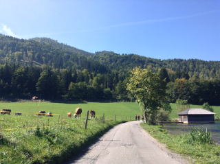 シュリーア湖に着くとババリアアルプスの前衛の山々に囲まれた美しい湖でした。湖畔の