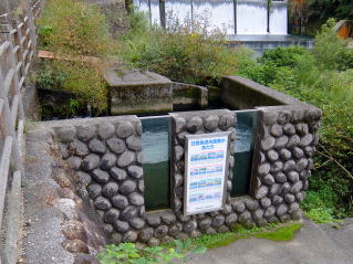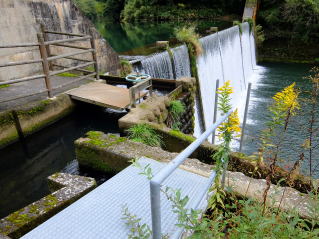 堰堤の端の不思議な形をしたこの「魚道」には、水の中が見れる観察窓が付いていた。