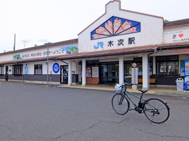 工具は無くチェーンカバーを外しての確認はできないので、自転車を押して木次駅へ歩いた。