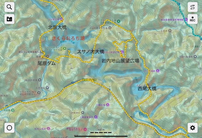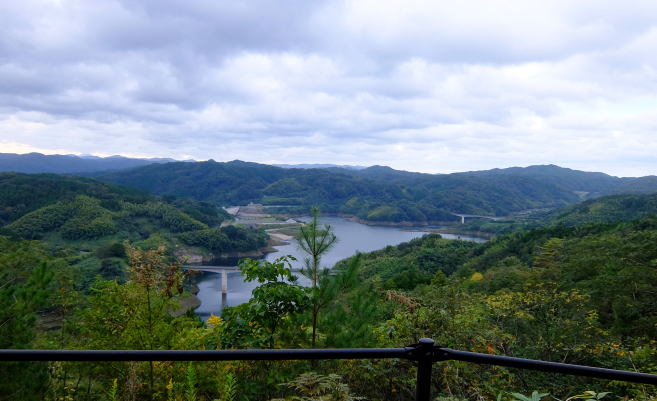 岩内地山展望広場からは、さくらおろち湖が一望でき、広い水面と広大な山々を堪能できま