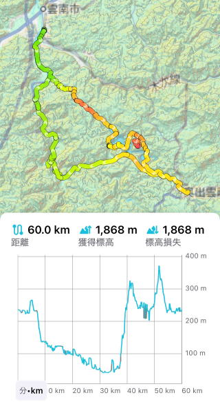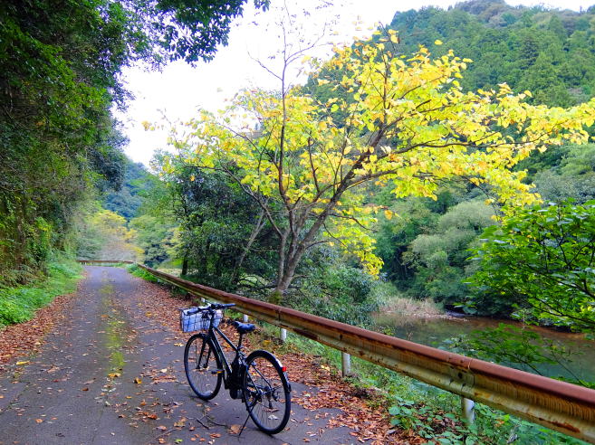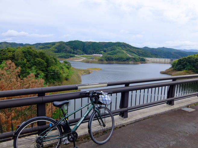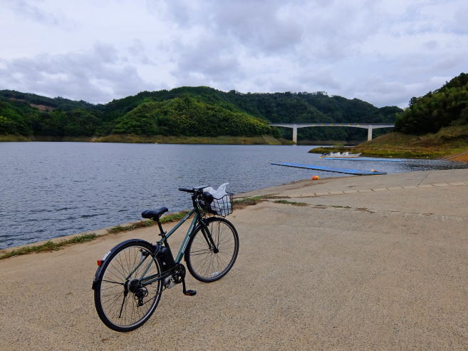 さくらおろち湖へは上りが続き、ロングモードでは重くてこぐのがつらいアシスト車