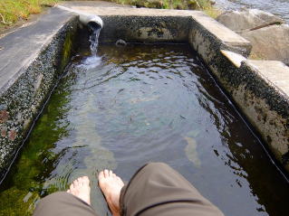 足湯にも入れなくて、しかたなく河原に降りてみると、