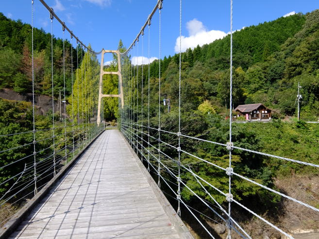 白椿湖に浮かぶ大きな吊橋「白椿大橋」からはワクワクな景色がひろがり、
