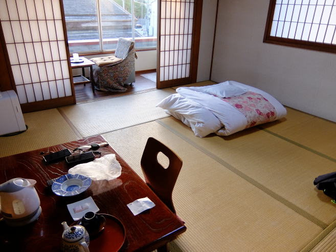 16時にチェクインして露天風呂へ。入口の札で貸し切り表示にできる様になっていて、日が