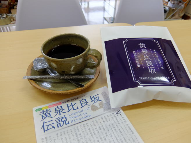 乗車時刻まで松浦珈琲「JAPANブレンド」と黄泉比良坂せんべいで休憩してから向かった