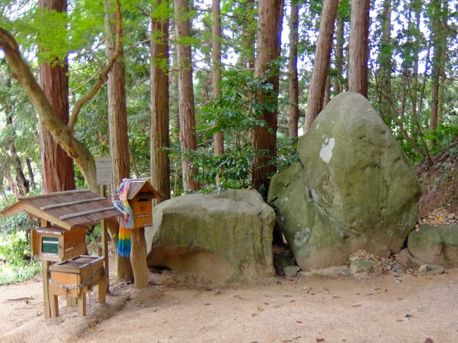 鳥居の先には黄泉の国への入口の大岩と、「天国への手紙」を入れるポストが有って、